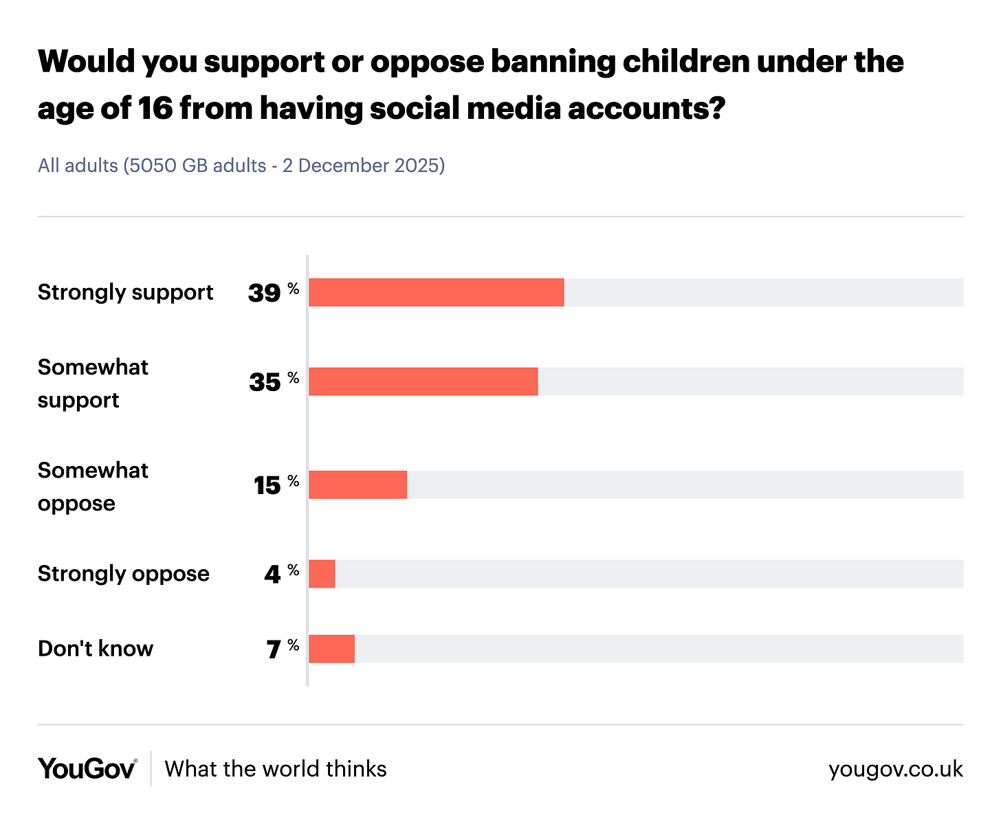Off the back of Australia’s ban, YouGov polled the British public this week and found that three quarters would either strongly or somewhat support raising the minimum age for social media usage.